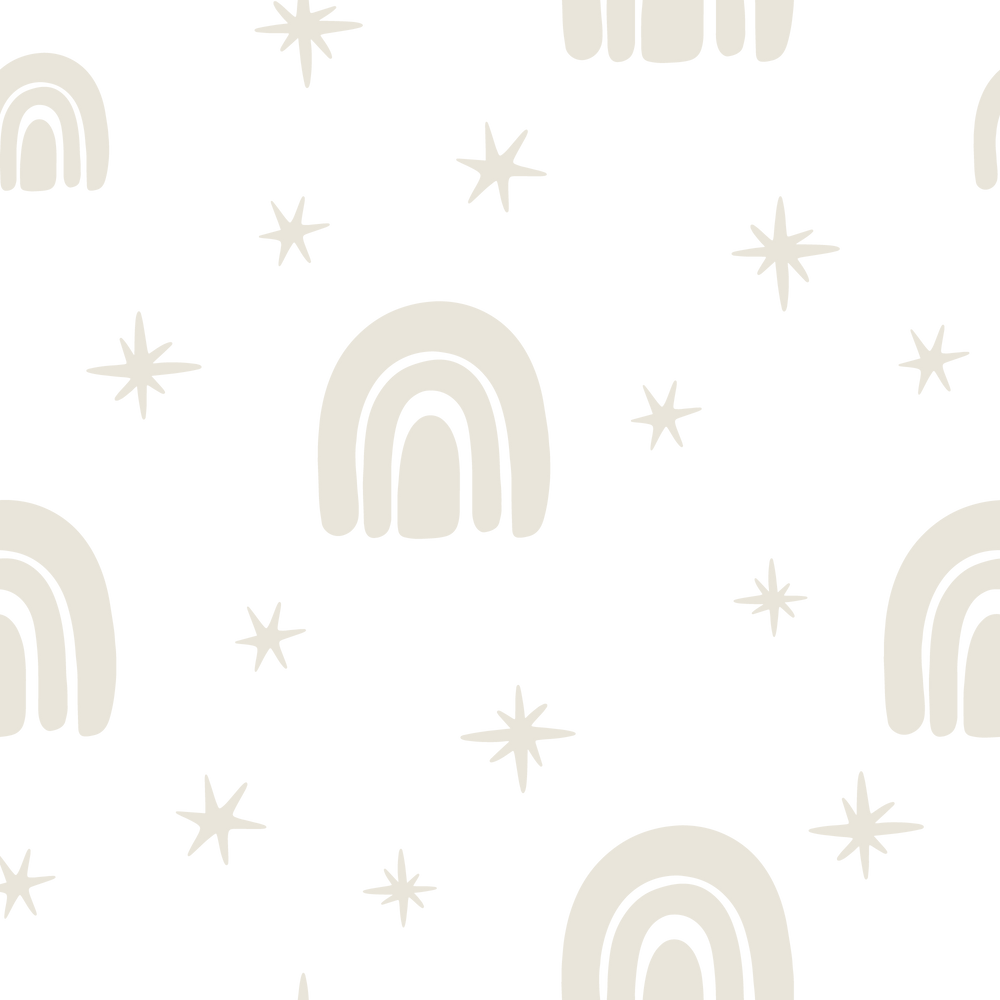 Create a whimsical and serene sanctuary for your little explorer with this enchanting boho nursery wallpaper. Soft, cream illustrations of vibrant rainbows and playful stars dance across a gentle beige background. Each detail feels handcrafted, exuding a gentle, cozy energy perfect for nurturing your child’s imagination. The gentle color palette and playful shapes foster a calm, peaceful environment for rest and play.