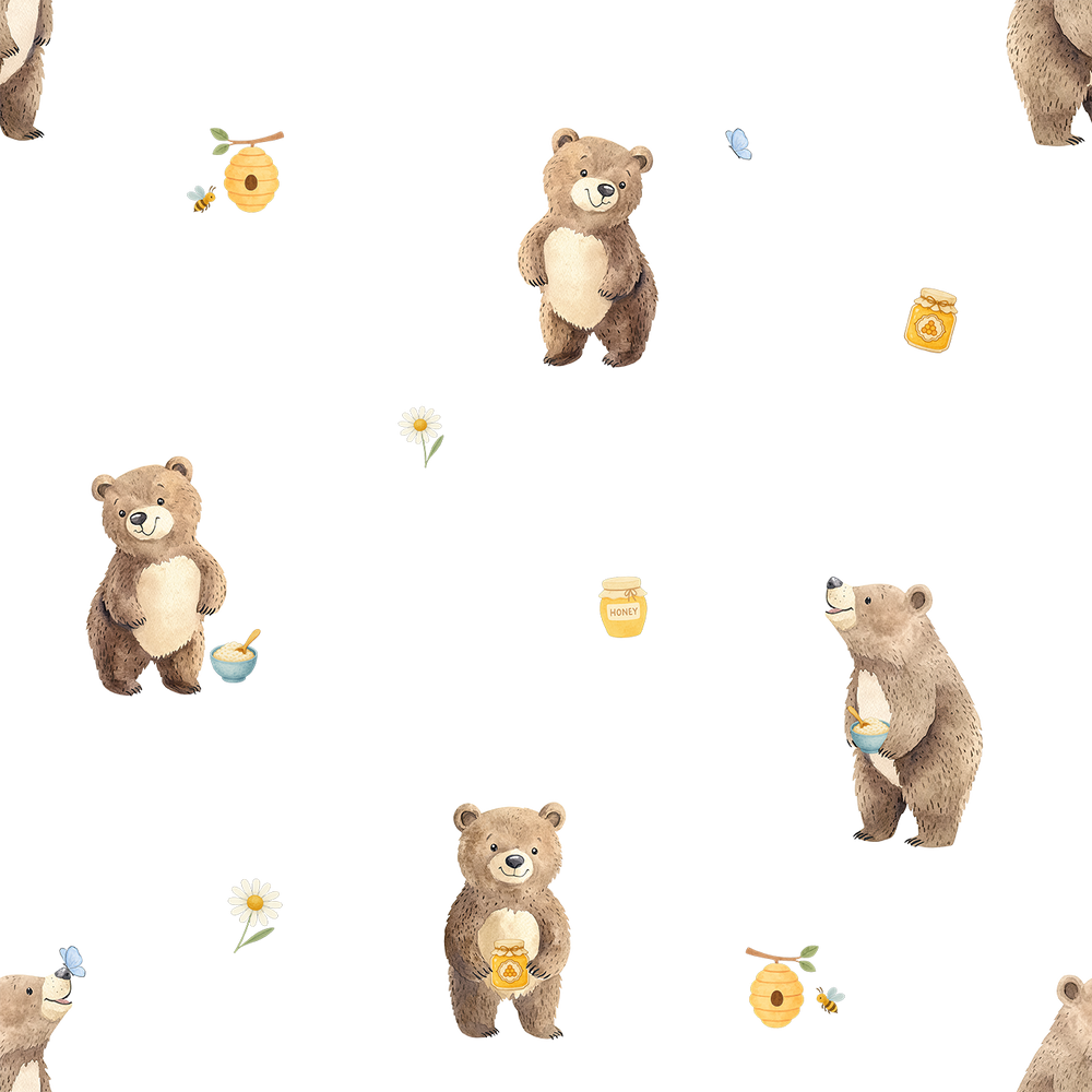 Indulge in the charming elegance of the Hudson wallpaper, featuring delicate honey bears, bees, and butterflies rendered in soft watercolour tones. This sophisticated design brings a gentle, nature-inspired ambiance to any room, blending whimsy with refined artistry to create a serene and inviting atmosphere. Perfect for adding subtle warmth and character to your space.
